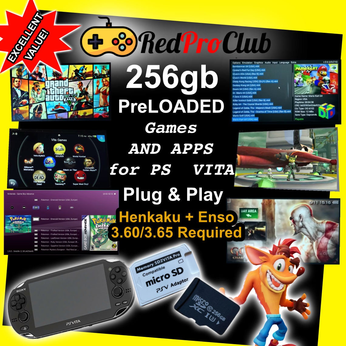Includes titles from PS Vita, PSP, PS1, N64, GBA, GB/GBC, Sega, Arcade/Mame, GTA & Bully Ports, other ports and much more. We assure you its fully loaded
