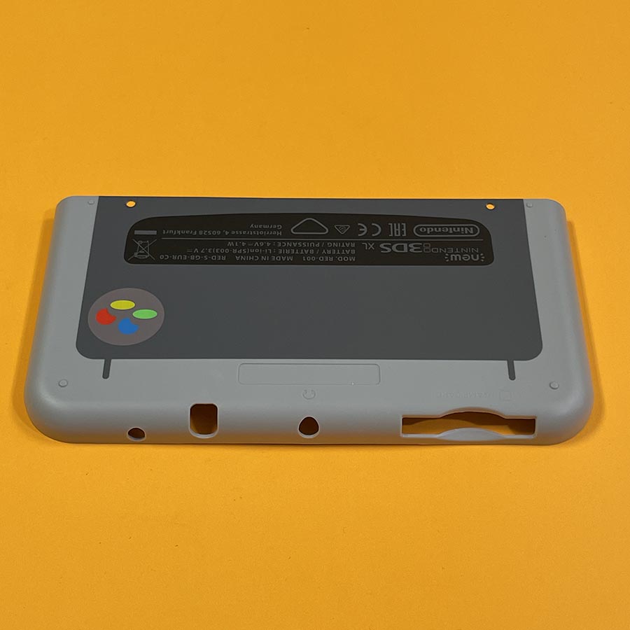 Replace your scratched or damaged outer shell with this Exterior Shell Cover Set for the New Nintendo 3DS XL – SNES Edition – Brand New. This replacement set includes the top (front) and bottom (back) exterior shell covers featuring the classic Super Nintendo (SNES) inspired design.