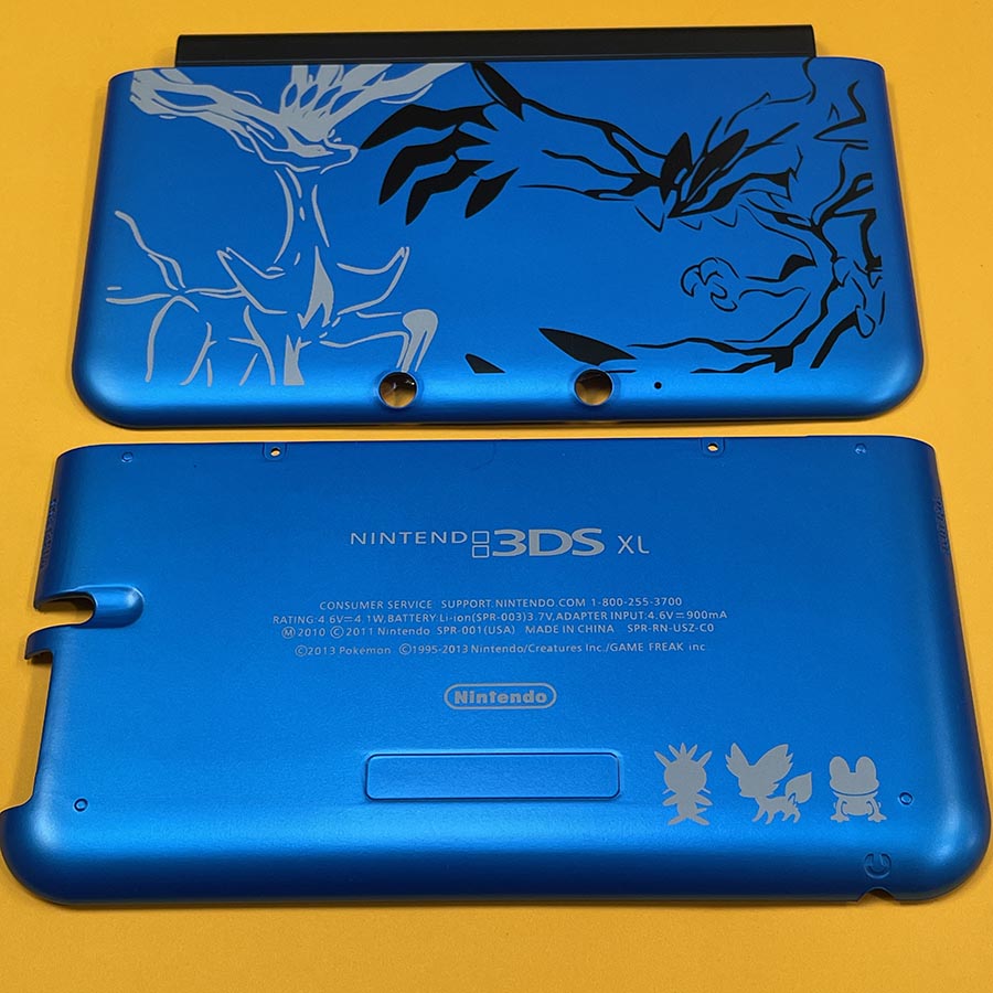 This set includes the front (top) and back (bottom) exterior shell covers—designed to match the original colorway of the Pokémon Xerneas and Yveltal Edition 3DS XL (no printed graphics).