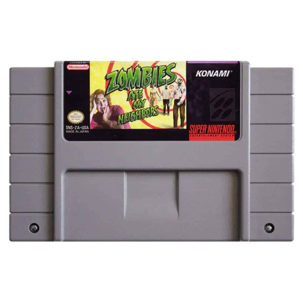 Step into a zombie-infested nightmare in Zombies Ate My Neighbors for Super Nintendo! Join Zeke and Julie as they navigate through creepy neighborhoods, haunted houses, and apocalyptic settings to save their friends from evil zombies, monsters, and other nightmarish creatures. Armed with wacky weapons and a variety of power-ups, you’ll need to rescue neighbors, defeat hordes of zombies, and survive traps in this fast-paced, action-packed shooter. Whether playing solo or teaming up with a friend in co-op mode, Zombies Ate My Neighbors delivers hours of fun, chaotic action, and retro thrills!